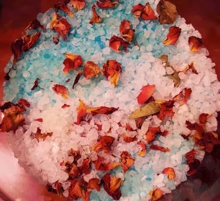 Las sales de baño son mezclas minerales enriquecidas con plantas medicinales, flores y aceites esenciales que ayudan a relajar el cuerpo, liberar tensiones y limpiar la energía acumulada del día.