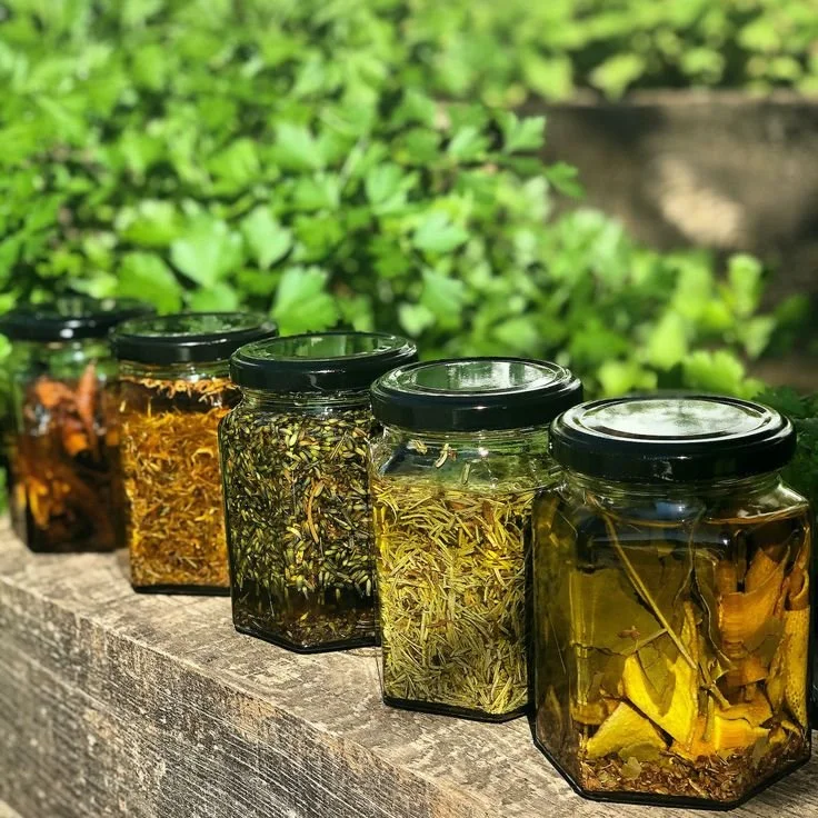 Cada frasco contiene la esencia viva de plantas cultivadas, recolectadas en nuestra huerta regenerativa y de otros territorios explorados, maceradas al ritmo del sol y el tiempo.
